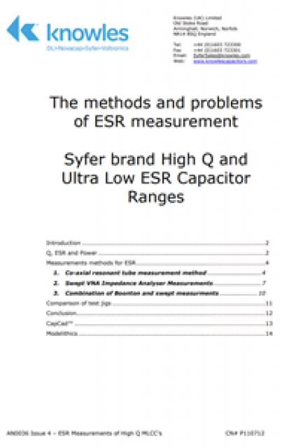 an0036 High Q and Ultra Low ESR Capacitor Ranges